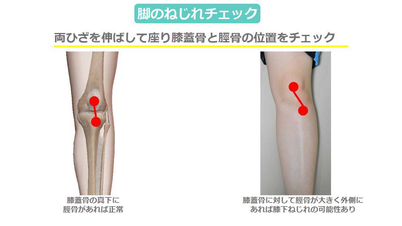 膝下が外側に捻じれた状態をいいます。専門的には「下腿外旋」と言われています…